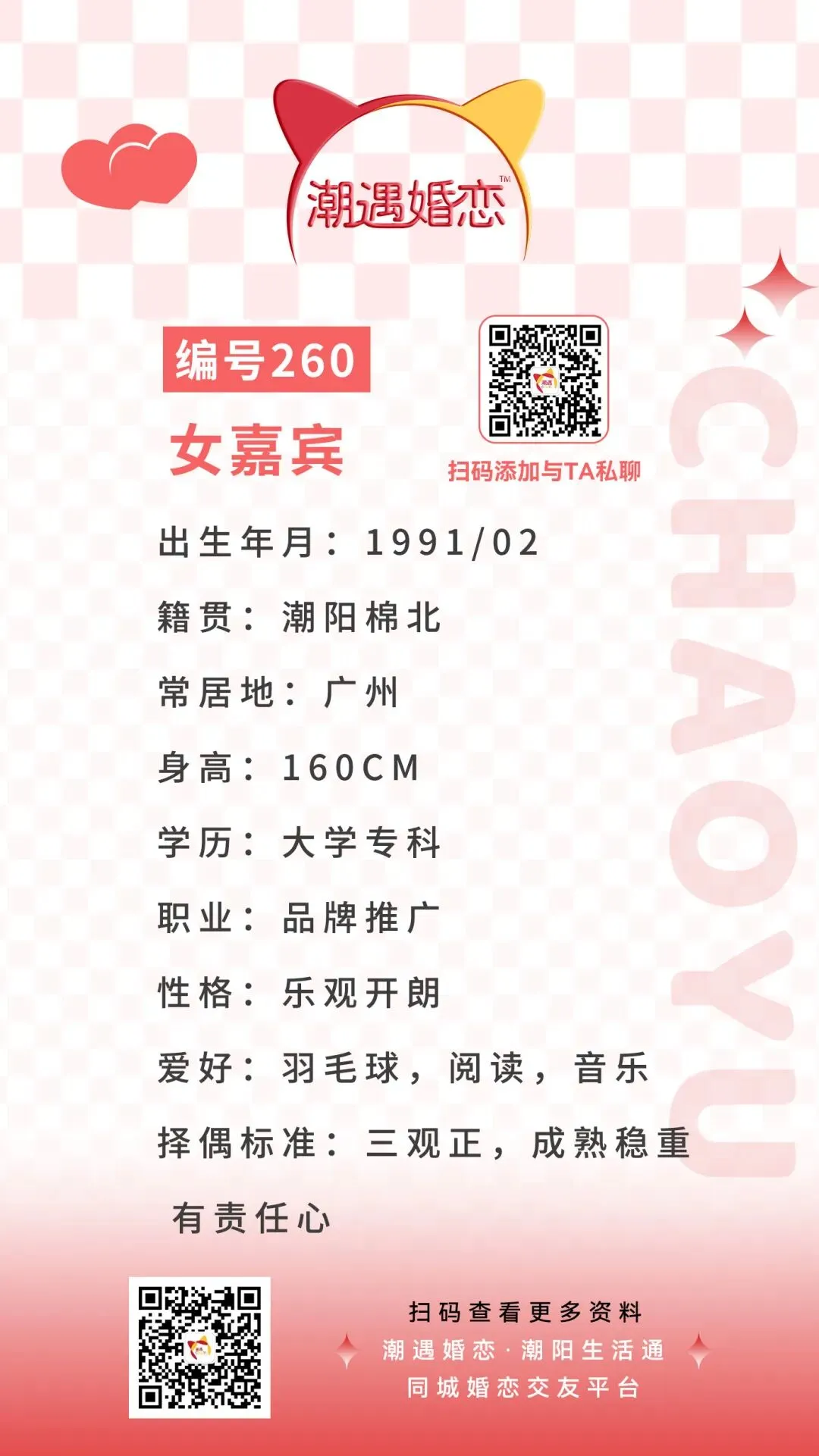 潮遇婚恋交友卡片 · 本期女嘉宾编号:260号