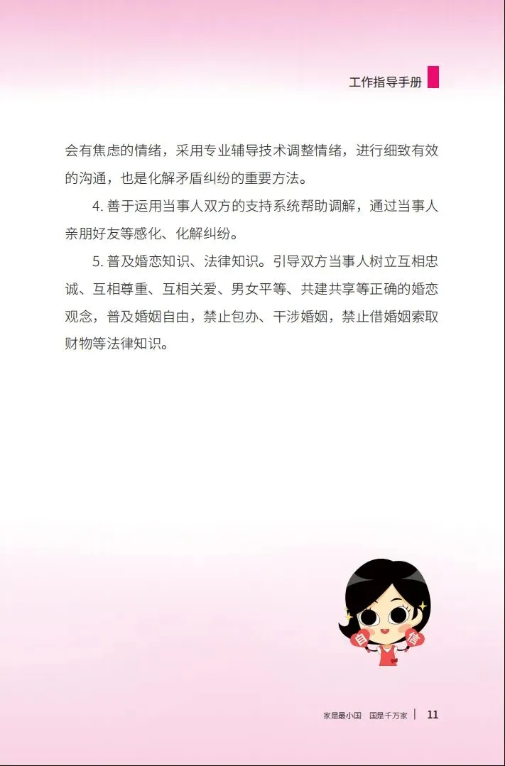 为进一步提升基层婚姻家庭纠纷调解队伍的专业素质和专项技能,全国妇联权益部制作了系列短视频,聚焦妇联组织、基层人民调解组织在婚姻家庭纠纷调解实务中常见的婚姻关系、家庭财产、亲子关系等七类问题,以深入阐述、生动评析以及经典案例分享的形式,为基层一线的妇联干部和婚姻家庭纠纷调解员提供专业辅导和实务指导,帮助她们以更优质、更专业的调解服务,努力把矛盾纠纷化解在基层、化解在萌芽状态。