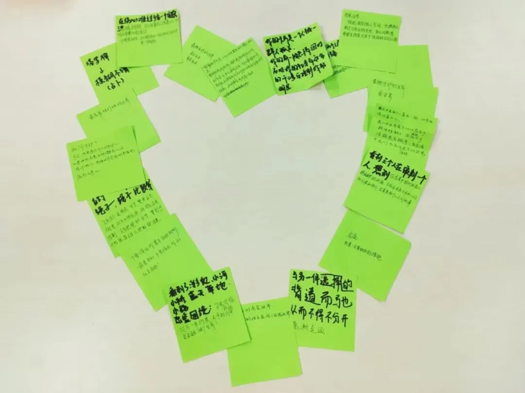 所有便利贴被混在一起,随机分发到大家手中。同学们轮流读出自己拿到的那张:有人读到“对方总想翻我手机”,背面写着“试着坦诚沟通,说明需要个人空间”;有人读到“不想过早发生亲密接触怎么办”,背面回应“不舒服就要说,真正爱你的人会等你”;也有人读到“恋爱后没了自己的社交圈”,背面建议“恋爱是靠近,不是圈养”。每一张被念出来,都像是一次无声的握手——原来别人也在经历相似的难,而背面那些小小的回应,正是彼此递出的光。