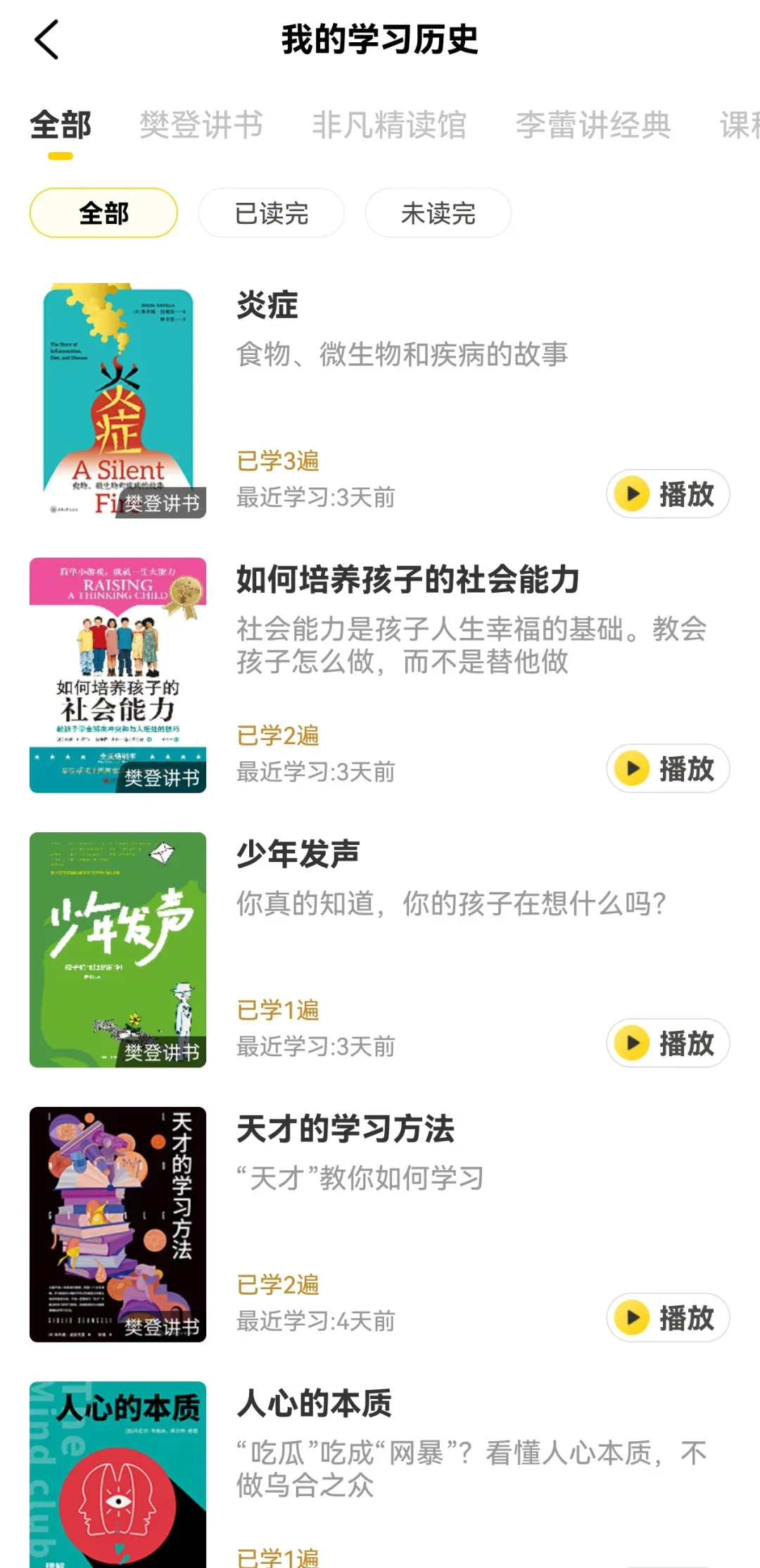 而且非凡精读里的医疗常识、哲学思维、甚至基础商业与财商内容,带着孩子一起听,也是在悄悄帮他建立对世界、对健康、对社会的基础认知。反观我们自己,年纪渐长,听过的内容很容易转头就忘。