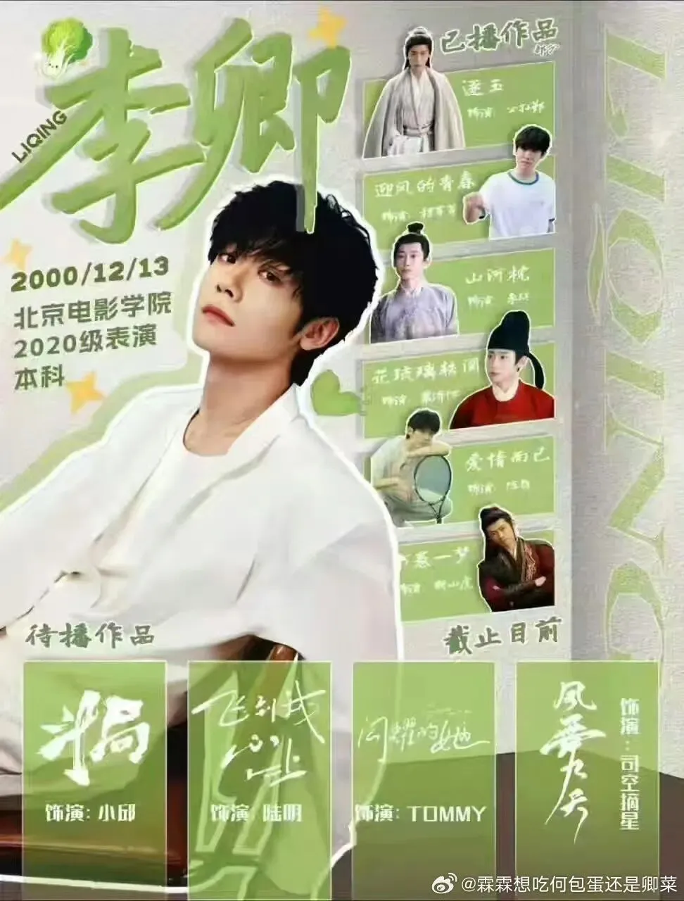 李卿2000年出生,毕业于北京电影学院,此前凭借《最初的相遇,最后的别离》《爱情而已》《花琉璃轶闻》等剧积累不少人气,此次更因《逐玉》公孙鄞一角迎来事业爆发期,跻身新晋潜力小生。
