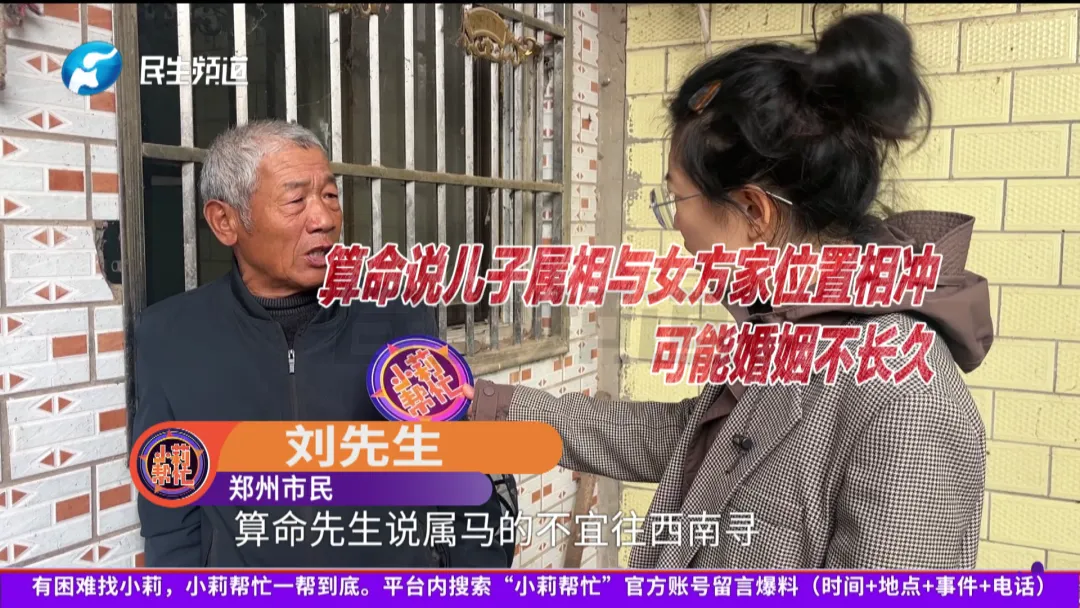 第三次,儿子和一位平顶山的女孩走到了一起,眼看要谈婚论嫁,刘先生却去找算命先生算了一卦。对方掐指一算,说儿子属马,而女孩来自西南方向,两人八字不合,婚姻恐怕难以长久。