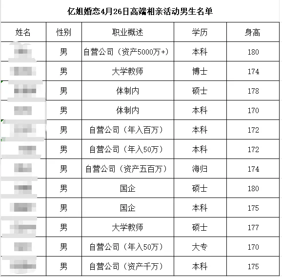 点击查看活动文案:亿姐婚恋高端联谊│固定资产500万相亲会4月26月举行,体制内或年收入50万均可报名