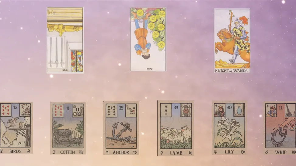 这不仅是一份恋爱感受报告,更是一场关于灵魂觉醒的真实记录。在这组牌阵中,我们捕捉到的能量场域绝非平淡的流水账,而是一场在停滞中惊醒、在焦虑中沉淀、最终在渴望中爆发的化学反应。在正缘的视角里,主角既是那股强行唤醒祂的力量,也是让祂在失控边缘不断寻找稳定的拉扯力。塔罗牌的三个维度,清晰地勾勒出正缘从自我封闭到情感远征的心路历程。首先,出现在情绪基调位的是宝剑四逆位。这张牌的出现,揭示了一种被迫结束的休眠状态。在遇到主角、或是与主角建立深层连接之前,正缘的心境极大概率是封闭且带有某种枯燥的秩序感的。 而主角的出现,如同一声惊雷,彻底打破了对方原本按部就班的静修状态。对正缘而言,这种恋爱感是躁动的——它不再允许正缘保持旁观者的冷静。这种能量的翻转,让正缘不得不从原本的安全屋中走出来,被迫投入这场突如其来的情感洪流。随后,在现实互动位,抽出来的牌是星币七逆位。这是一个关于焦虑的强烈信号。在日常的磨合与相处中,正缘其实正经历着一种微妙的心理落差。或许是因为双方的阶层差异,亦或是现实层面的重重阻碍,祂会觉得这段感情的进度条让祂感到心焦。 祂会下意识地迫切想要看到结果,而产生了一种现实成长速度跟不上内心渴望的错觉。对正缘来说,与主角恋爱并非只有甜腻,更多的是一种需要付出巨大耐心、且伴随着等不及的焦灼感。最后,在未来的预期位,能量呈现为权杖骑士正位。这是全阵最亮眼的反转。尽管存在焦灼与不安,但正缘对未来的预期却是极度渴望且充满行动力的。权杖骑士象征着强烈的热情与追逐的本能。祂觉得这段关系充满了野性的生命力,甚至产生了一种即便还没完全看清终点,也要先冲向主角的激情。这种为了主角奔赴远方的冲动,正是这段关系最底层的动力源。雷诺曼的补牌如同显微镜,精准还原了那些让正缘又爱又怕的交互细节。首先是关于沟通的博弈:鸟牌与棺材牌。鸟牌代表了高频的沟通与信息的流动,而紧随其后的棺材牌则代表了压抑与终结。这揭示了一个深层现象:正缘会因为这段关系进行反复的复盘与思考,但很多话到了嘴边却选择压着不说。 表现为一种想联系但克制、想表达但收回的心理拉扯。正缘的内心活动极其丰富,外在却不一定显山露水。祂正在经历某种旧有沟通模式的死亡,试图在沉默与爆发之间,为主角寻找一个新的表达出口。其次是关于核心的安全感:锚牌与羔羊牌。这是一个极其温暖且具有疗愈感的信号。锚牌是绝对的稳固,而羔羊牌代表了纯真与柔和。 尽管外界压力重重,但在核心相处中,正缘觉得主角带给了祂前所未有的安全感。在正缘眼中,主角有时像一只小羊,那种单纯、不带算计的质地,是祂所在的高阶层圈子里极其罕见的稀缺品。这种纯粹感让惯于商战与权谋的正缘感到了真正的安宁,从而产生了一种想要定下来的强烈渴望。最后是关于吸引力的张力:百合牌与鞭子牌。这是全阵最矛盾也最迷人的耦合。百合牌代表高雅与纯洁,鞭子牌则代表冲突与生理吸引力。 这说明正缘眼中的主角是极具反差感的:既有百合般清冷高贵、击中其审美的一面;又带给祂鞭子般难以抗拒的感官刺激。这种克制与冲动的博弈,让恋爱体验变得异常带劲。综上所述,正缘眼中的恋爱体验可以归纳为三个维度:在感官上, 祂觉得主角极具魅力,是一股让祂不得不舍弃安逸、跨越障碍的魔力。在心理上, 祂在焦虑中寻找稳定。主角的纯粹让祂安心,但阶层的阻隔又让祂觉得这段路走得异常急促且沉重。在模式上, 这是一场硬核的恋爱。它绝非花前月下的平稳,而是伴随着深刻的沟通重组与激烈的能量拉扯。抽出来的塔罗牌分别是:宝剑四逆位、星币七逆位、权杖骑士正位;抽出来的雷诺曼补牌分别是:鸟牌、棺材牌、锚牌、羔羊牌、百合牌、鞭子牌。