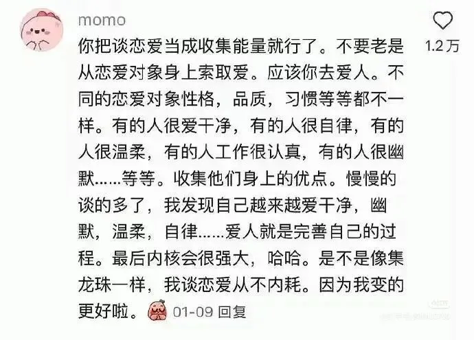 但有人说:“我谈恋爱从不内耗。因为我变的更好啦。”