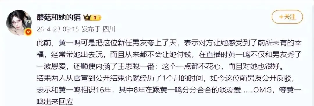 懒懒和王思聪是2024年6月公开恋情的,刚好和黄一鸣第一次认娃撞上。他过去17段感情,最长半年,这次快三年了,连卡片上都写了“老婆”。黄一鸣不直接骂王思聪了,转头点名懒懒的医美机构。这不是偶然。当一个人没法从法律上要到抚养费,也没法靠舆论逼对方出面,那就只能打对方现在最在意的那个人。