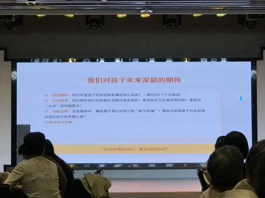 在小组讨论中,大家围绕“我们对孩子未来家庭的期待”展开交流