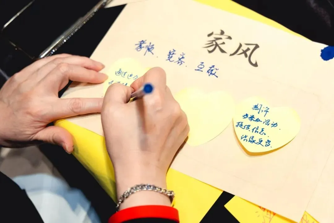 在“我的家风传承”环节中,家长们用关键词画像梳理自家的家风底色,回忆成长中影响至深的家庭传统,也思考着如何将“温暖、尊重、包容”等正向价值观传递给下一代。
