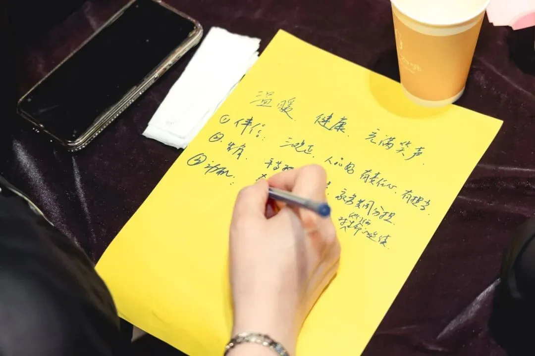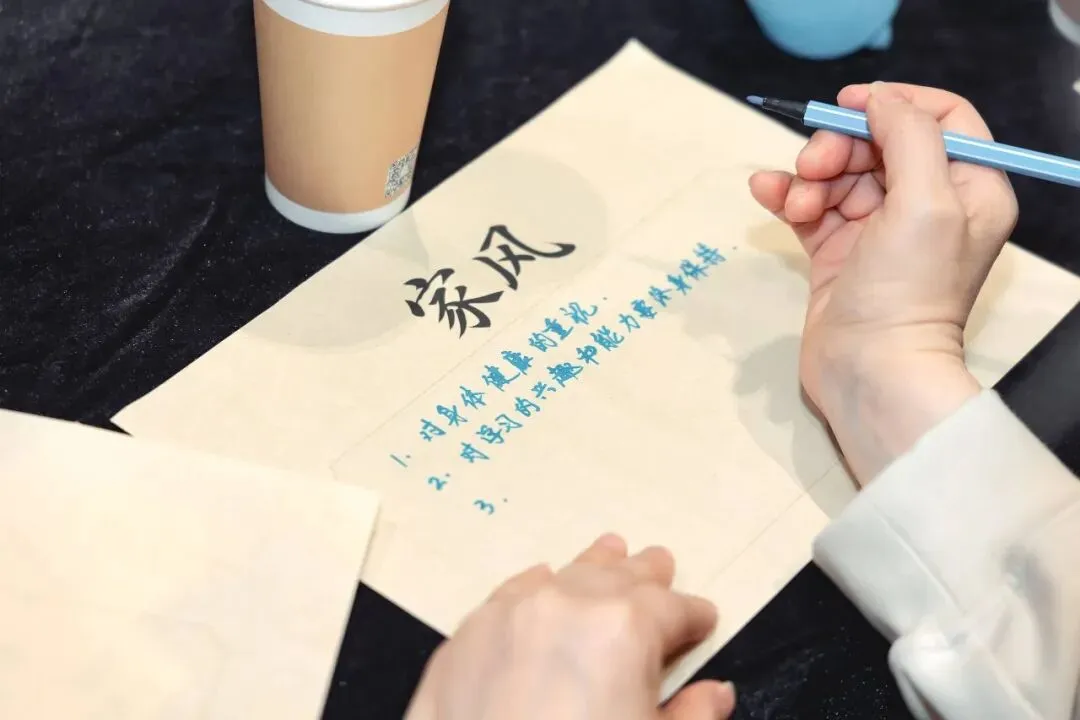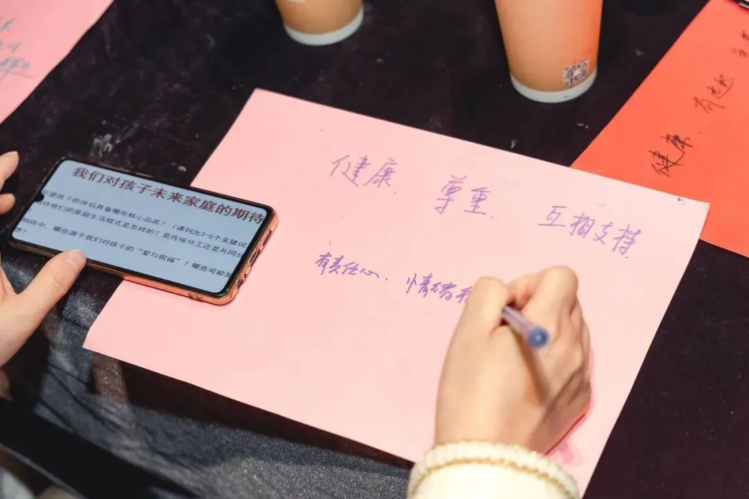 活动最后,在“亲子和解仪式”中,家长们写下当天的收获,也为自己和孩子送上了一句祝福。“爱不是催促,而是相信。相信孩子有自己的时区,相信幸福有多种模样”。这句话成为现场许多家长的共鸣心声。