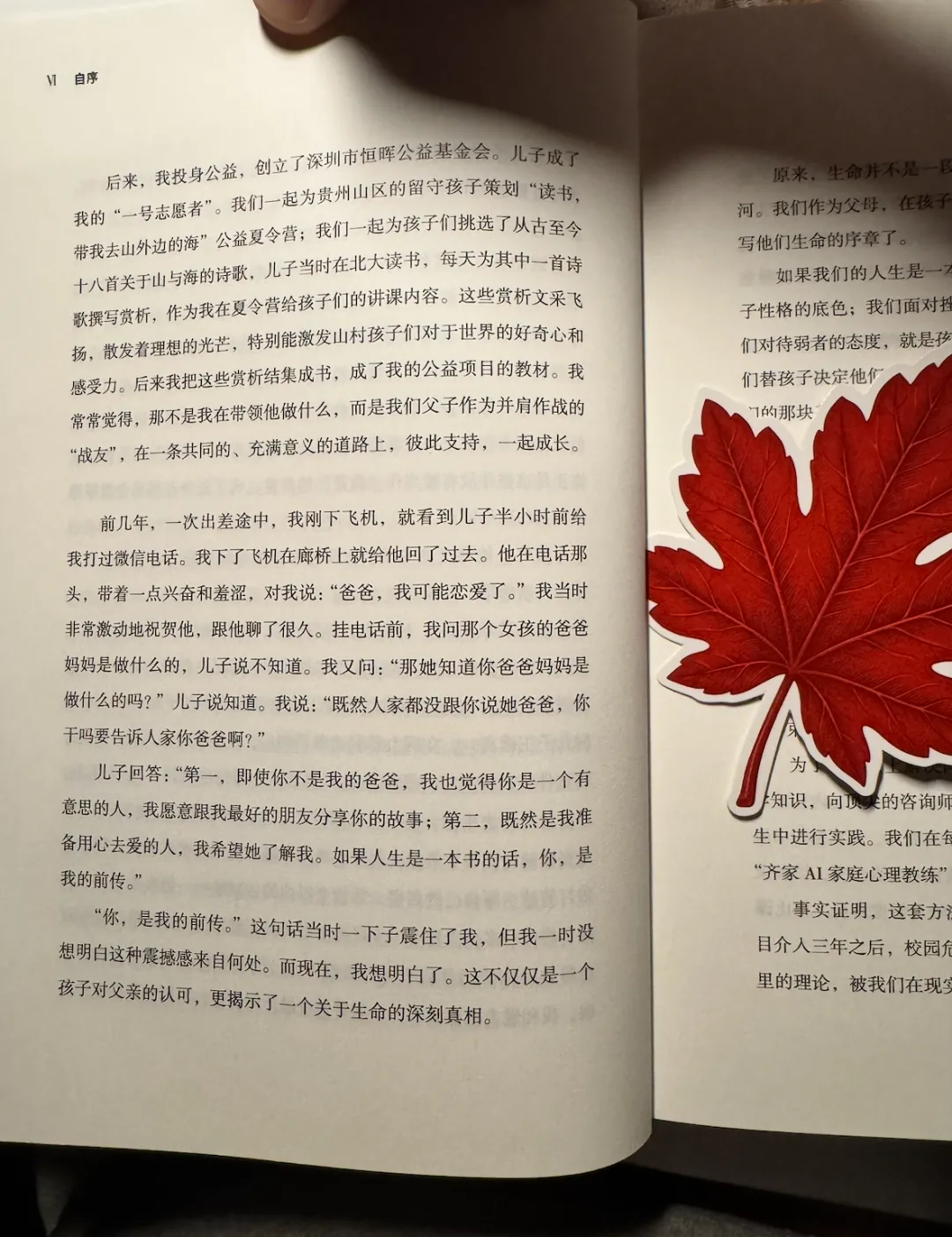 儿子回答:"第一,即使你不是我的爸爸,我也觉得你是一个有意思的人,我愿意跟我最好的朋友分享你的故事;第二,既然是我准备用心去爱的人,我希望她了解我。**如果人生是一本书的话,你是我的前传**。"