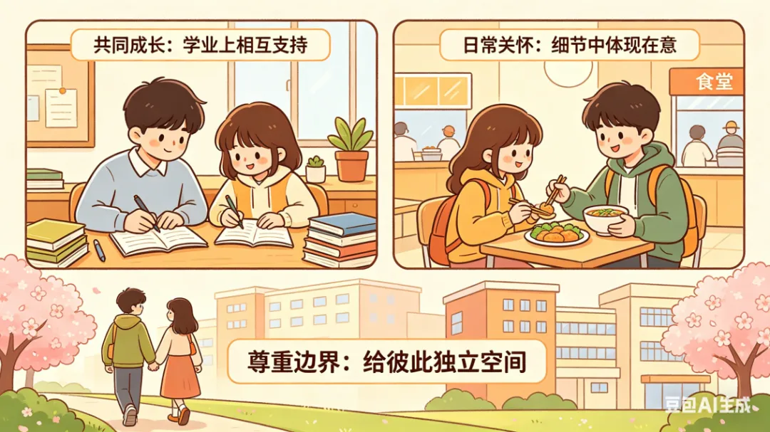 1.学业恋爱平衡:制定时间规划,明确学习、恋爱、休息边界,上课不分心,拒绝熬夜聊天,优先保障学习进度。