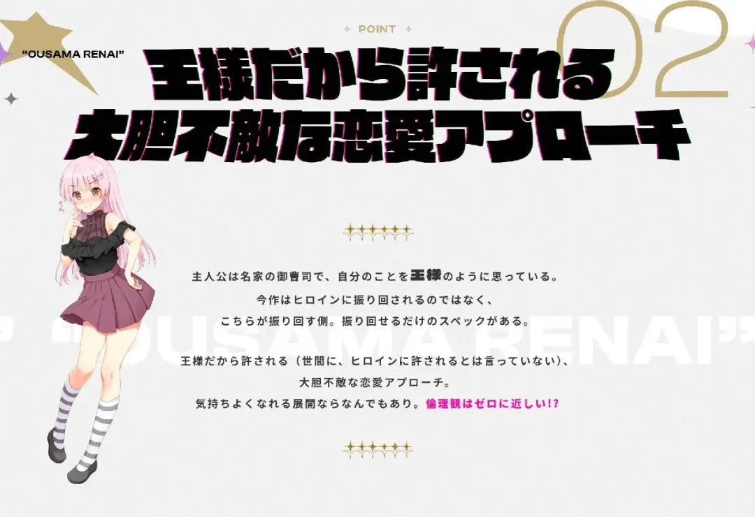 正因为是“国王”才会被原谅的(只是被世俗原谅,可没说女主角们也会原谅哦),大胆无畏的恋爱攻势。