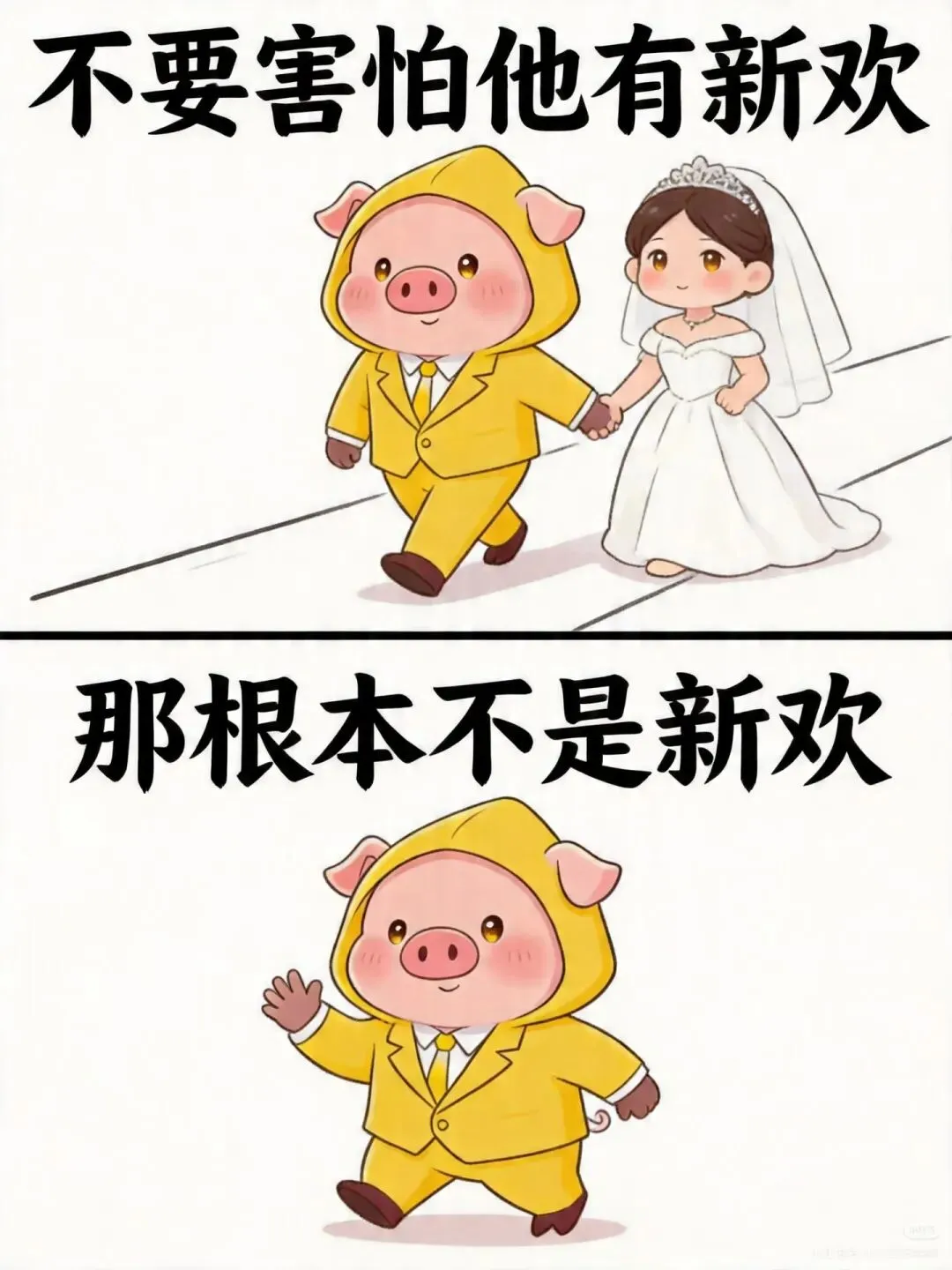 你看这只小猪,上一秒还牵着新娘的手,下一秒直接自己跑路了!