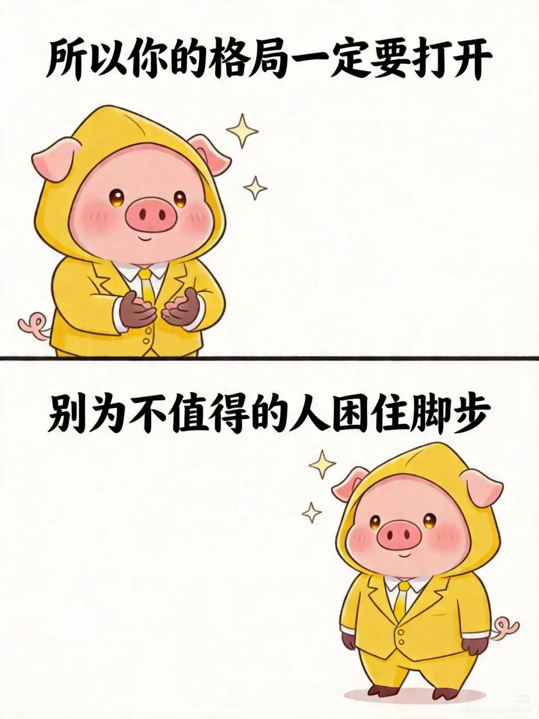 你看这只小猪,先是摊开双手给你“鼓掌打气”,然后转身大步向前走,简直就是在替你喊口号!