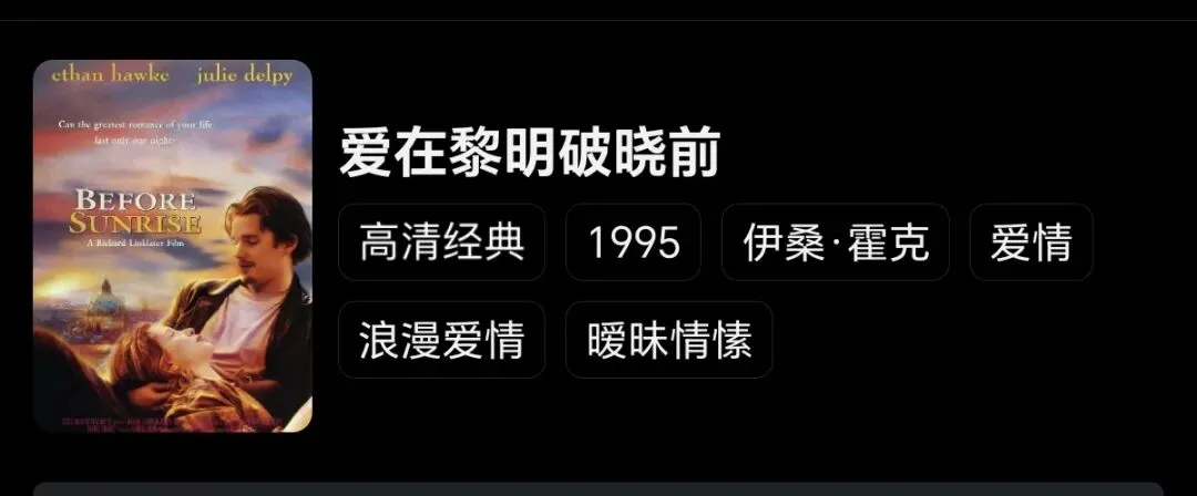 周末得空,将早就想看的婚恋三部曲《爱在黎明破晓前》《爱在日落黄昏时》《爱在午夜降临前》一并拿下。