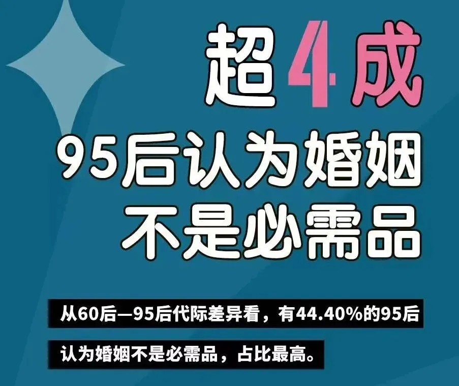 对95后来说,婚姻不再是“必需品”。他们有工作、有收入、有朋友、有爱好,一个人也能过得挺好。如果结婚不能带来“增量幸福”,那为什么要结?