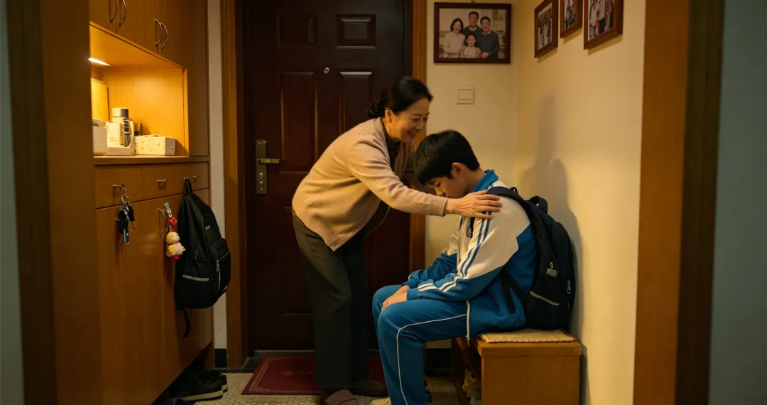 我一眼就看出来他情绪特别低落,肯定是在学校遇到烦心事了。