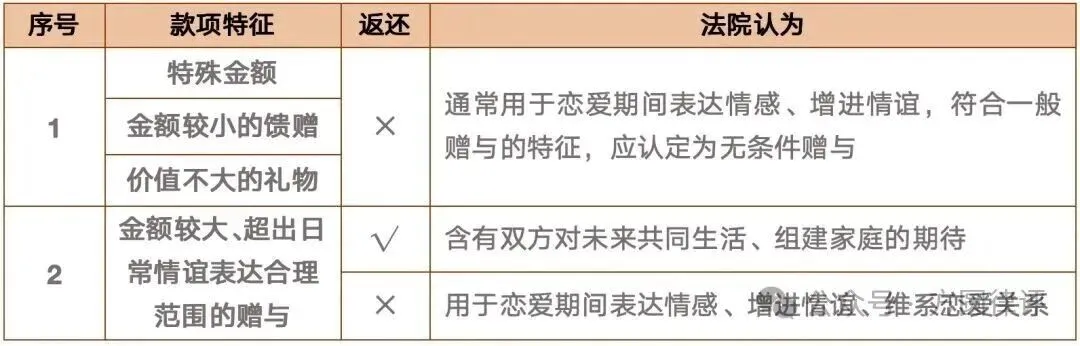 这里要注意:这种赠与的“条件”,就是双方结婚。如果最后没结婚,这个条件就没达成,赠与就不算数,给钱的一方有权要求返还。