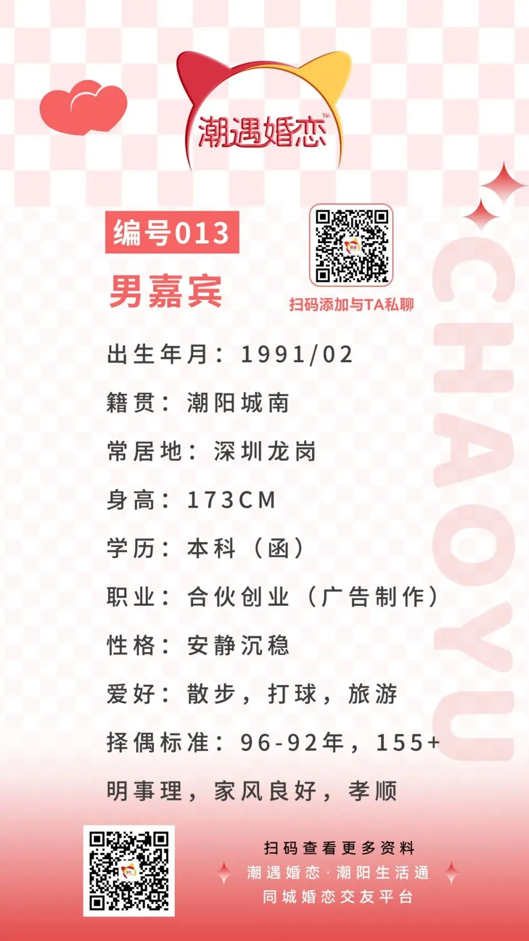 潮遇婚恋|(编号013)棉城男子,91年,择偶标准…