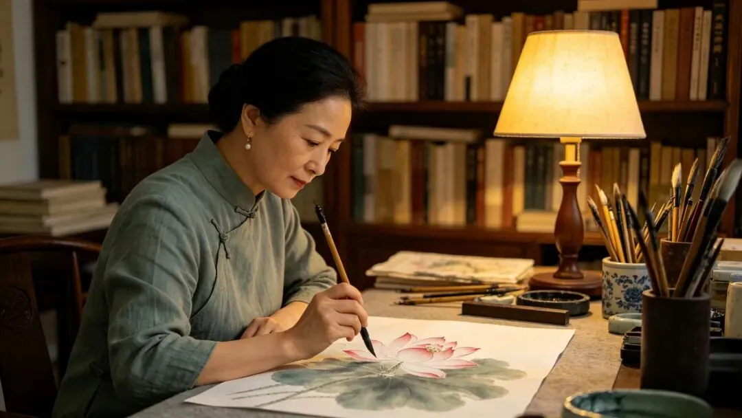 上次见她,她正在画一幅《荷花图》,笔触虽然还显稚嫩,但眼神里的光特别亮。