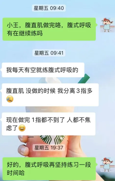 “那段时间我焦虑得不行,产后才一个月就急着恢复,天天疯狂刷小红书,跟着学‘7天瘦肚’教程,结果越练腰越痛,肚子也没见小……”她笑着吐槽这段“黑历史”,但眼里藏不住当时的委屈。而照亮这段难捱日子的,不只是专业的治疗,更是人心底那份实打实的暖。
