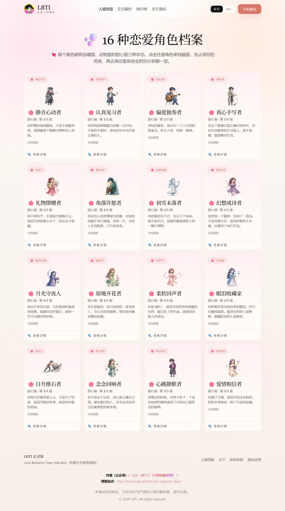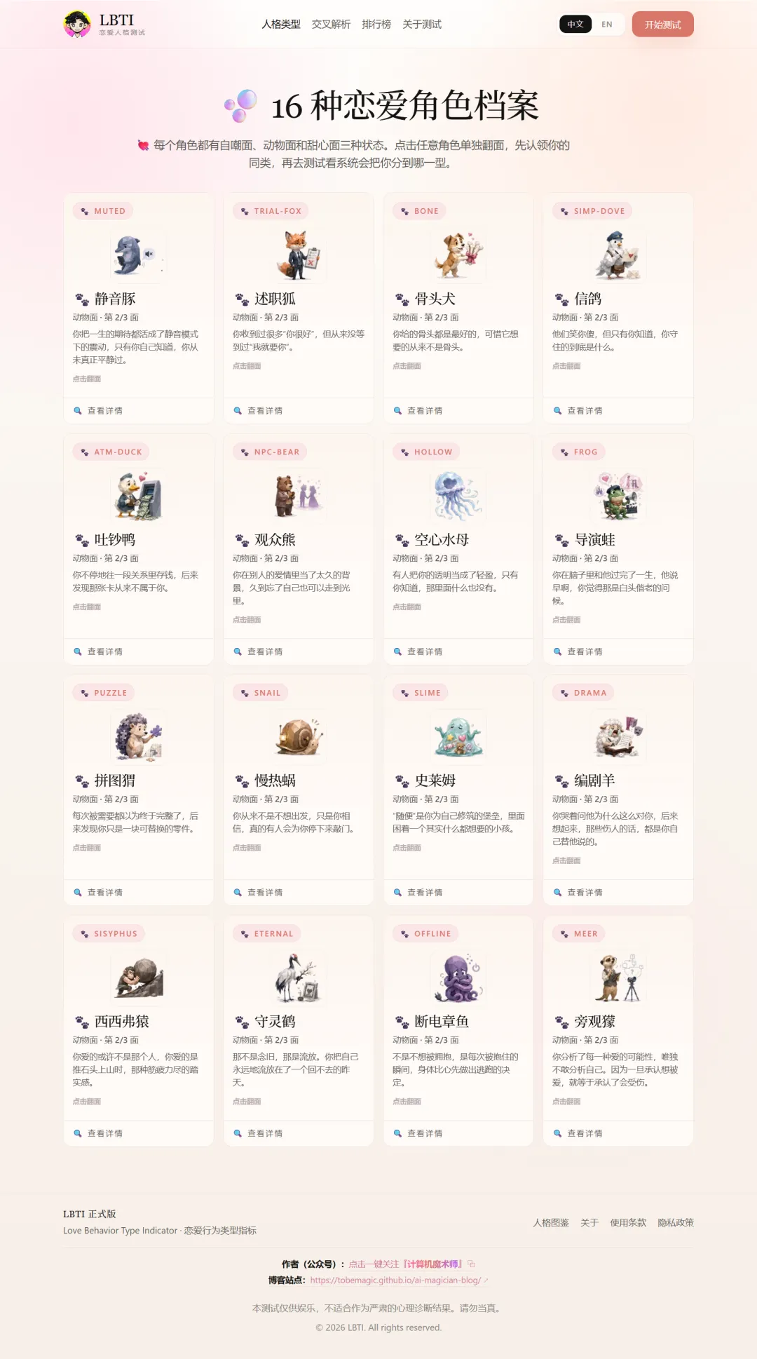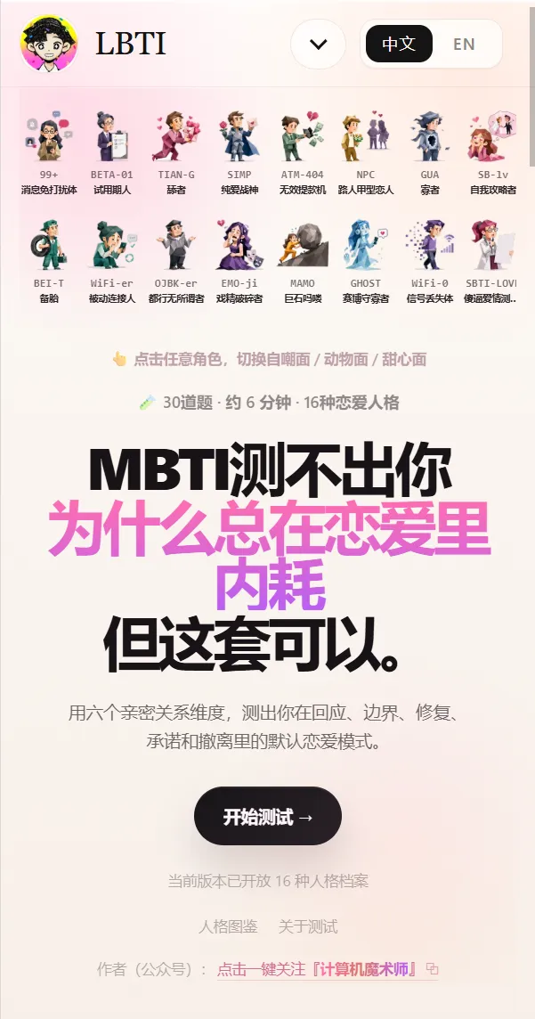入口链接,大家测测是自己什么角色欢迎评论区分享,给我看看还有谁是tain~g: