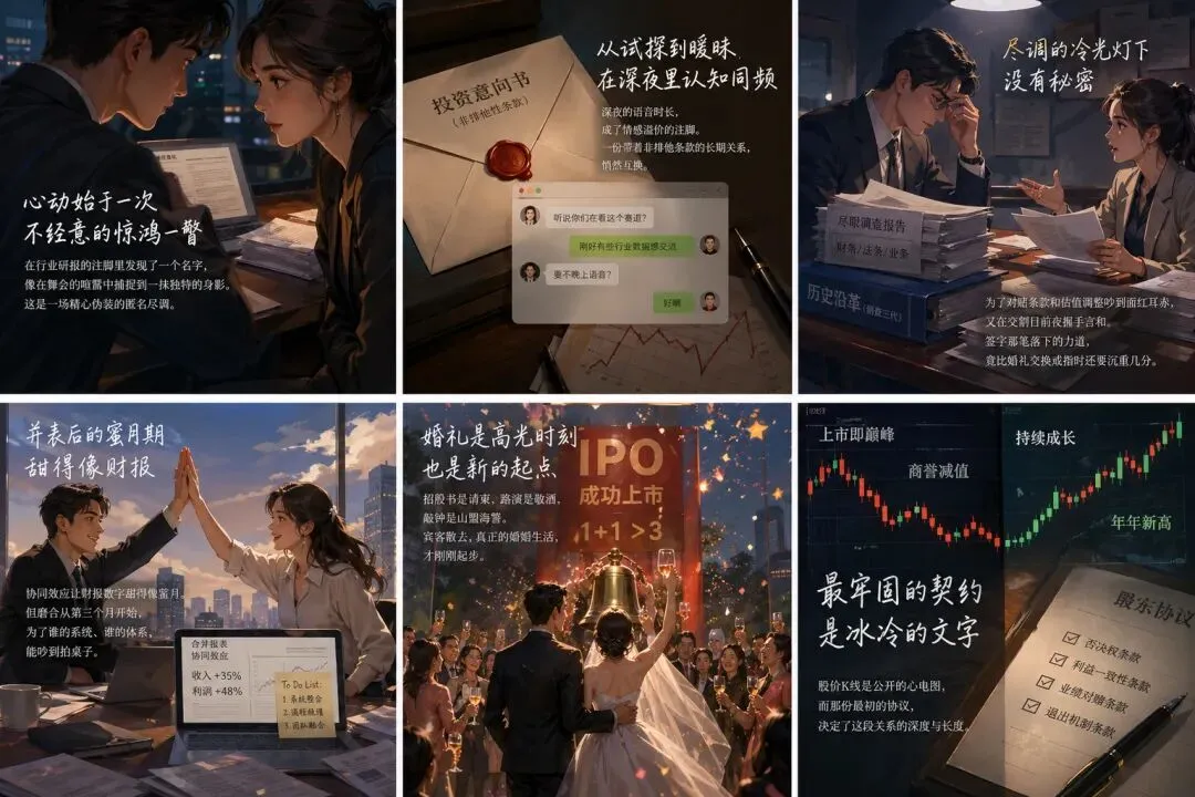 当审计与法务团队正式进场,热恋的甜腻戛然而止。翻看账本如同互查手机,历史沿革要倒查三代。她的税务筹划有点野,你的内控流程有点乱,各自的底牌在尽职调查的冷光灯下暴露无遗。为了对赌条款和估值调整吵到面红耳赤,又在交割日前夜握手言和。签字那笔落下的力道,竟比婚礼交换戒指时还要沉重几分。