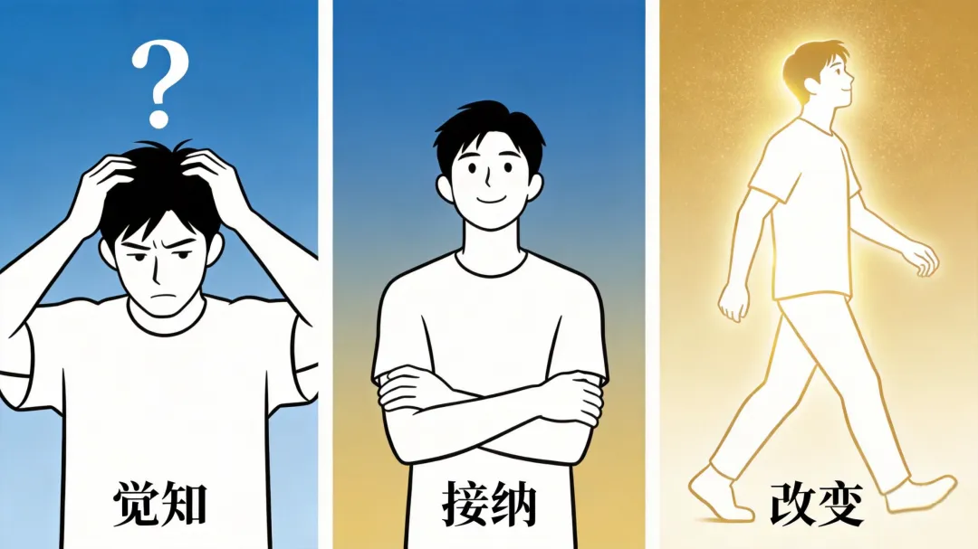 三步:觉知 → 接纳 → 改变。