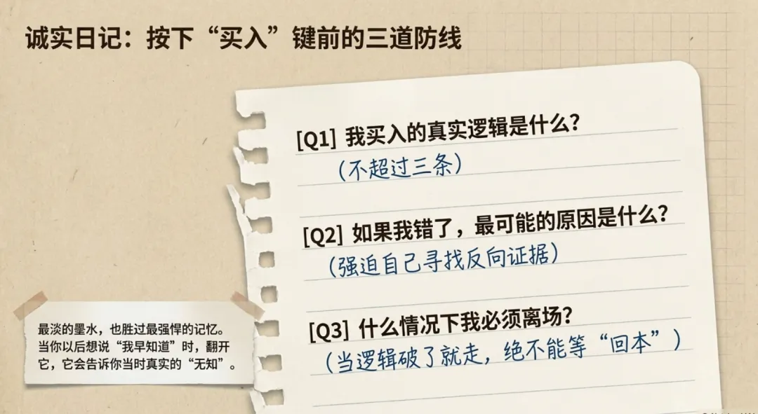 想要破解认知偏差,我建议你在按下买入键的那一刻,对照上述五步写下“诚实日记”: