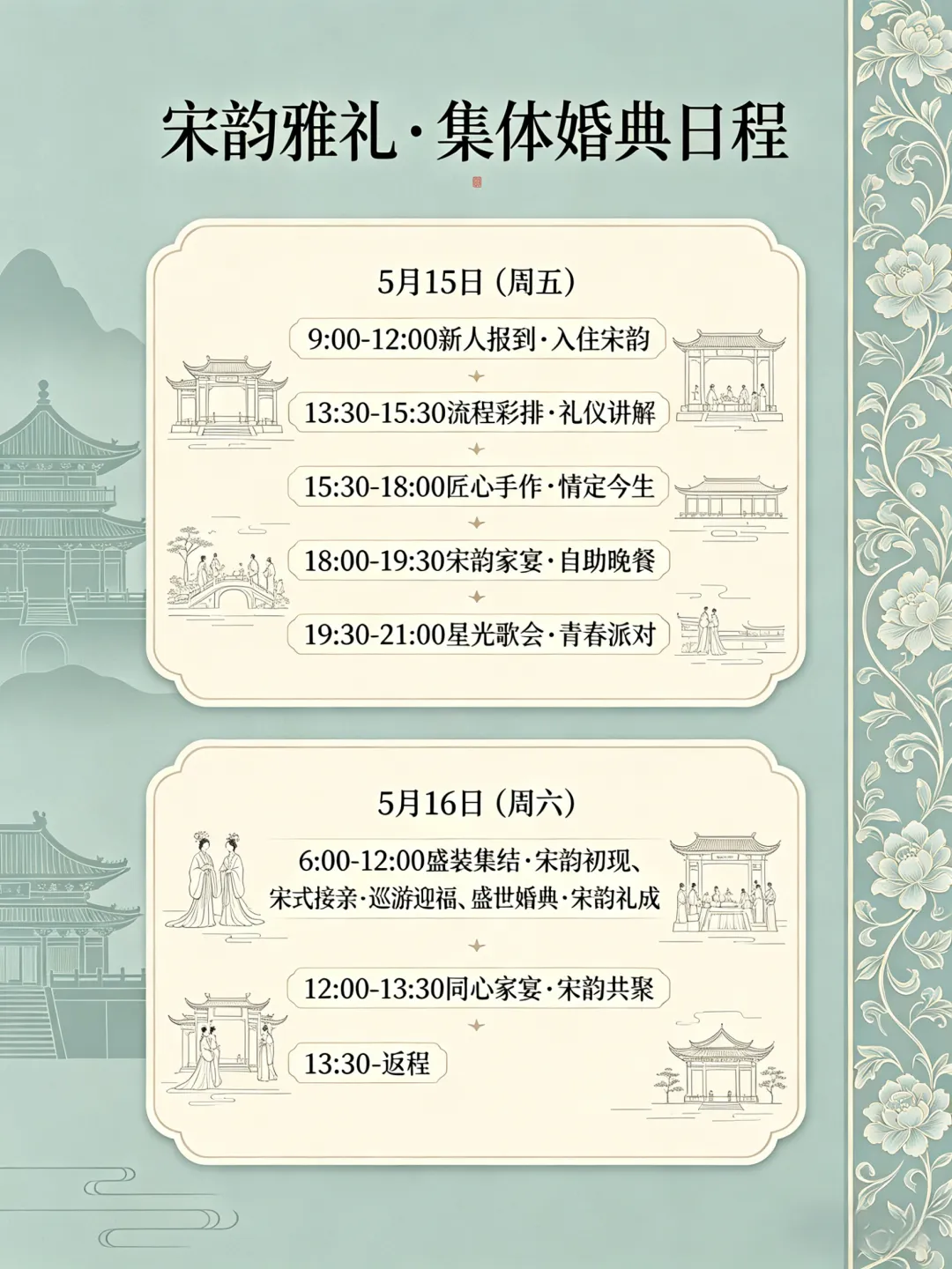 为更好引导青年树立正确婚恋观、家庭观,助力解决青年关切的“关键小事”,持续继承发展中华优秀婚姻家庭文化,融合宋韵文化与开化根雕文化特色,进一步提升青年人才的幸福感、获得感与归属感,将于5月举办2026年“爱在浙里·亲青恋”全省520青年集体婚礼活动,现招募2对新人,共赴浪漫的宋韵婚礼。