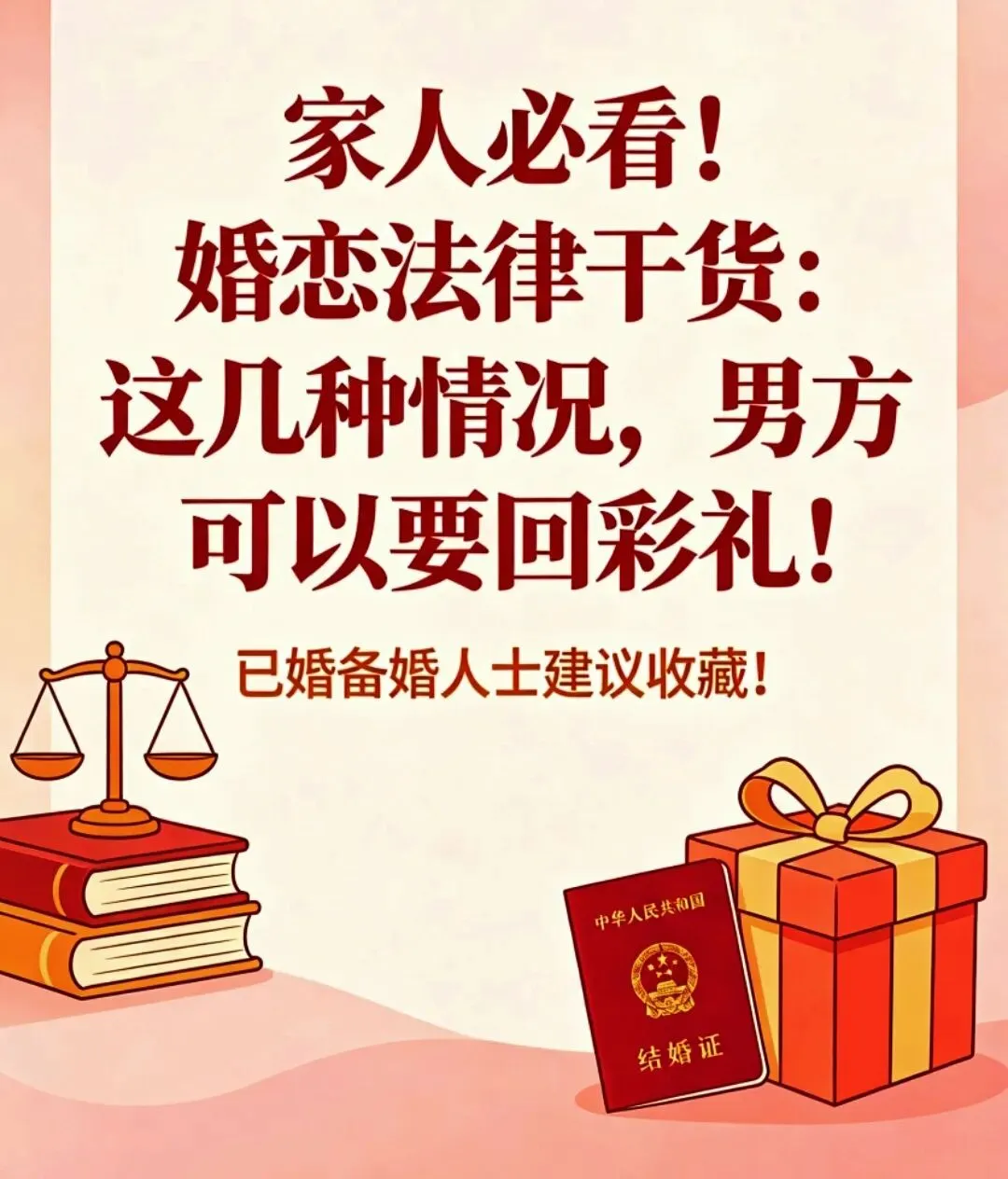 建议备婚情侣、已婚夫妻、双方父母都收藏起来,认清彩礼法律边界,明确双方财产权利与义务,减少矛盾纠纷,让感情和婚姻更加纯粹安稳。