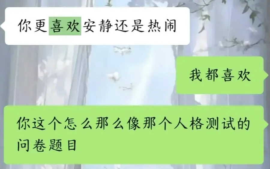 (是我抖音推荐过的洋桔梗hhh) 我们是在健身房里认识的,好吧,我单方面这么认为的。我还记得那天,他穿了一个很多巴胺的蓝背心(嗯,是我喜欢的亮色系多巴胺穿搭),从龙门架到爬楼机,我一直在看他。我一直是一个专一的小女孩,一直专注于喜欢白净的小男孩,从小到大,因为小时候羞涩于表达喜爱之情,小学曾经不小心把同桌弄哭好几次。高中暗恋过两个男生也都是很白净的类型。用我朋友话说,就是喜欢小白脸。好吧,我就是。然后我想着,万一人家明天不来健身房了呢,上一秒还在和朋友说想加那个男生vx,下一秒我朋友嘴里的水还没咽下去,我就跑到了爬楼机旁边。我说,同学你好,我可以加一个你的vx吗?他还有点没反应过来,我只能重复一遍,同学,我能加一个你的vx吗。就这样,我有了他的vx。后面一问才知道。我嘞个世界之小啊,这人是我隔壁学院的,而且都是大一。然后两个人就开始聊天,我当时觉得他脑子有点问题,动不动就问我一个问题,如下