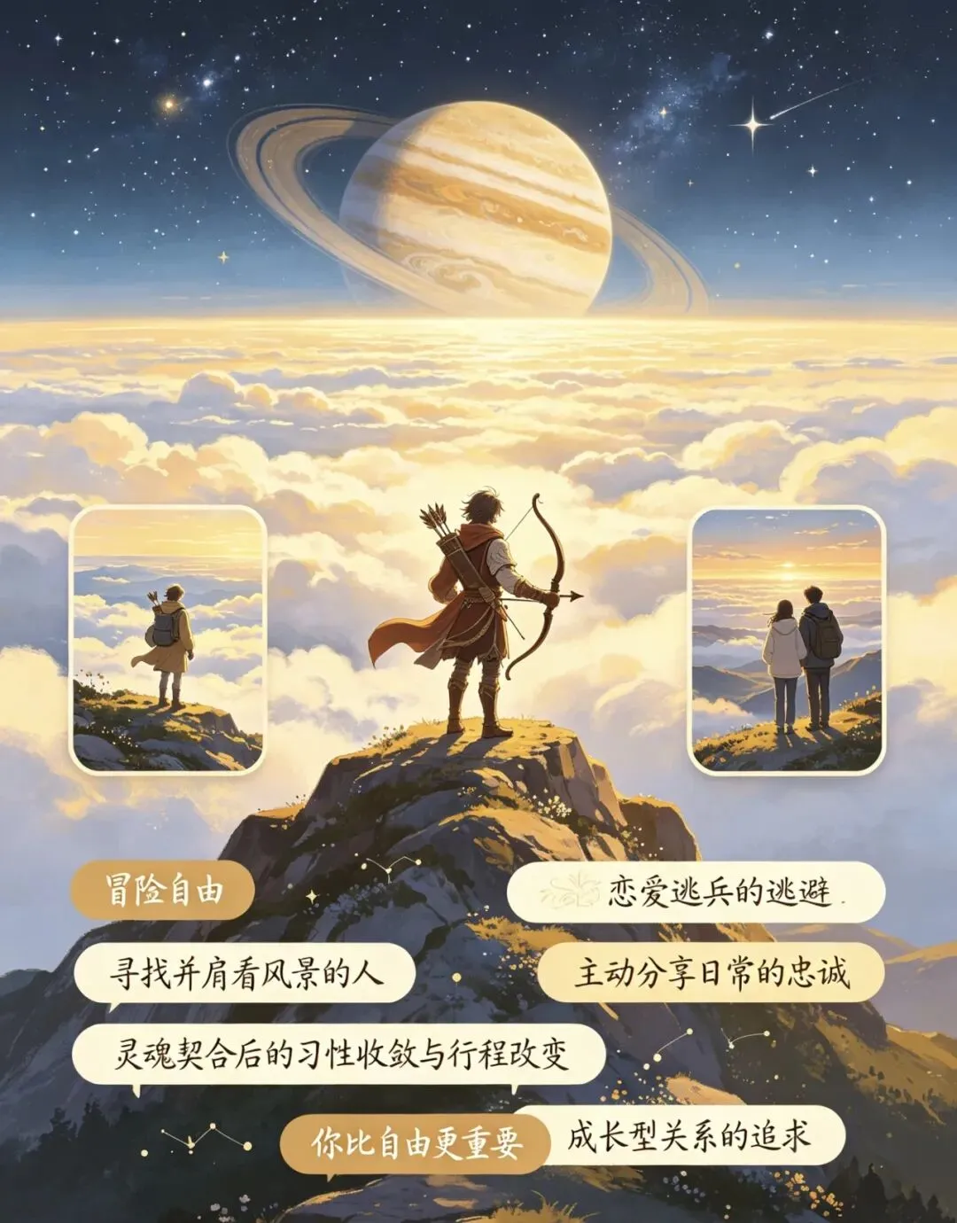 木星守护的射手热爱冒险,追求自由,常被视为恋爱逃兵。射手享受暧昧期的刺激感,但关系确定后容易因压力逃避。他们像候鸟追逐远方,实则在寻找能与自己并肩看风景的人。遇到灵魂契合的伴侣时,射手会主动收敛浪荡的习性,甚至为对方改变行程规划。他们会用实际行动表达忠诚。平时反感报备的他们,恋爱后会主动分享日常,甚至为伴侣规划未来,直言你比自由更重要。木星能量使射手追求成长型关系,逃避的是束缚感而非责任感。当成为伴侣时,射手的忠诚度会超越预期。
