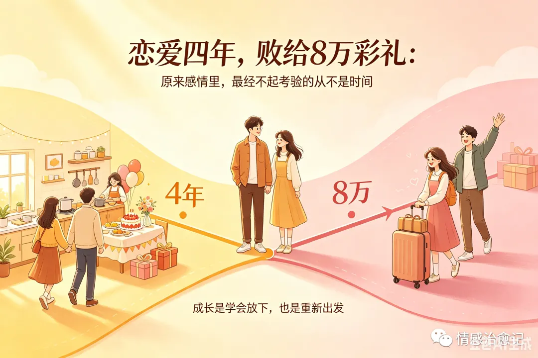而何涛跟朋友抱怨时,也满是不解:“都谈了四年恋爱,感情难道不比钱重要?她就非要纠结这两万块,分明是把钱看得比我还重,根本不是真心想跟我过日子。”