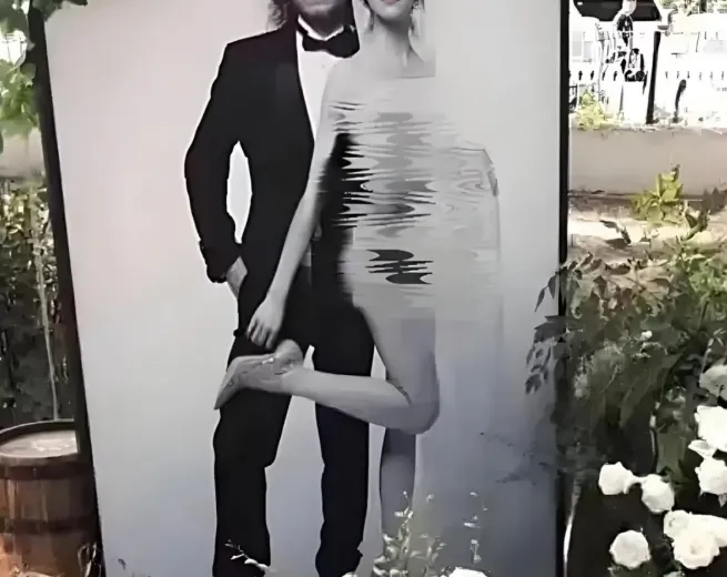 结婚当天,迎宾照更是夺人眼球——新郎衣冠楚楚,新娘赤身裸体。