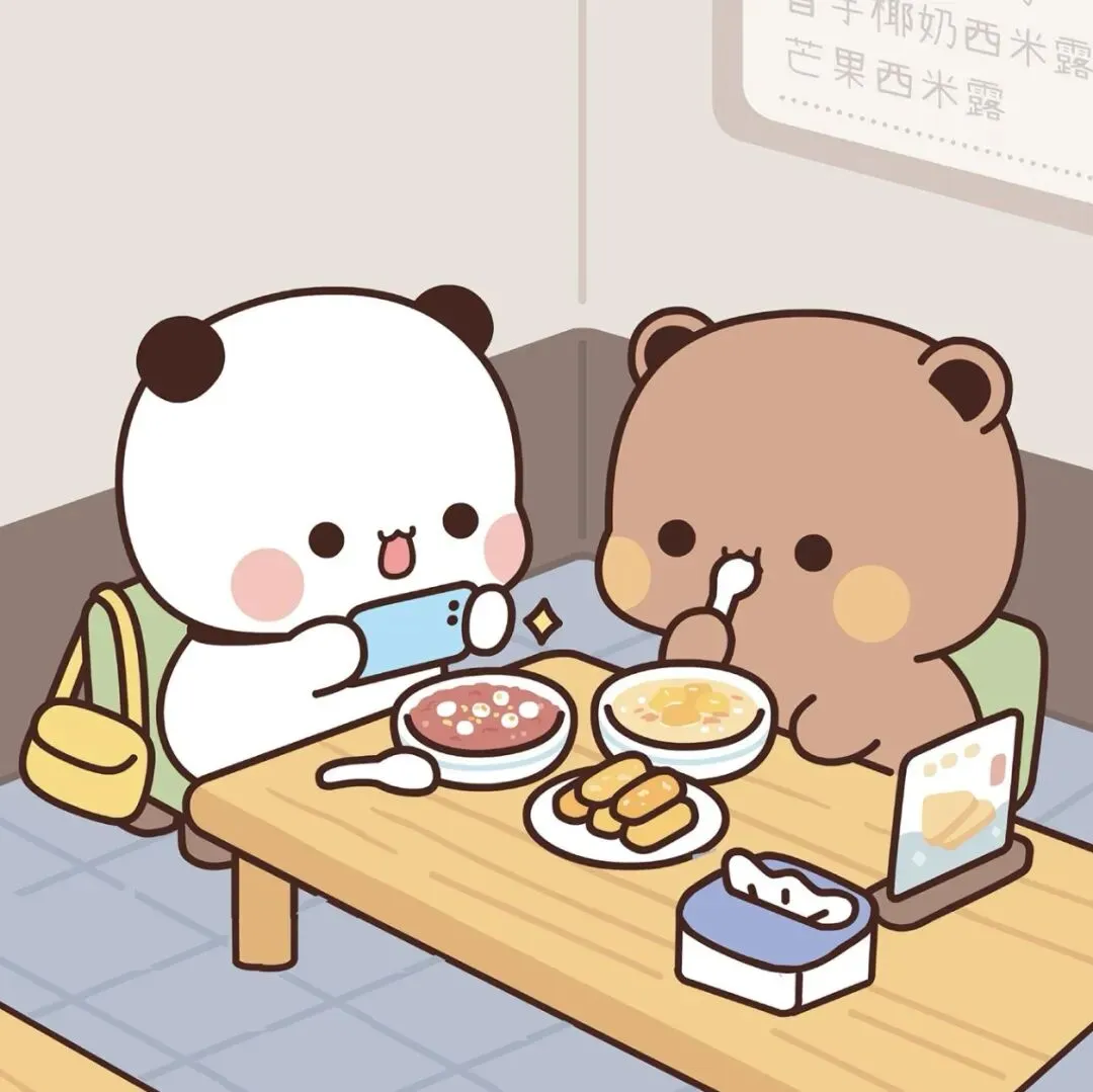 它们也会一起去吃甜甜的西米露。一二举着手机,对着满桌的美食拍个不停,连书包都没来得及放下;布布捧着勺子大口干饭,面前的芒果西米露冒着热气,连背景板上的字都变得软乎乎的。和喜欢的人一起吃好吃的,连糖水都比平时甜了好几个度,原来“一起干饭”才是最治愈的小事。