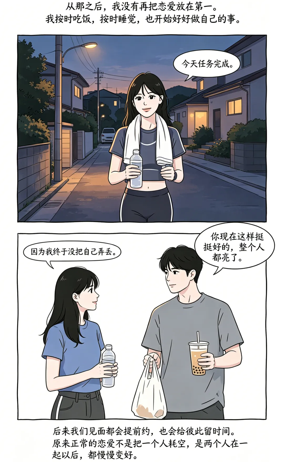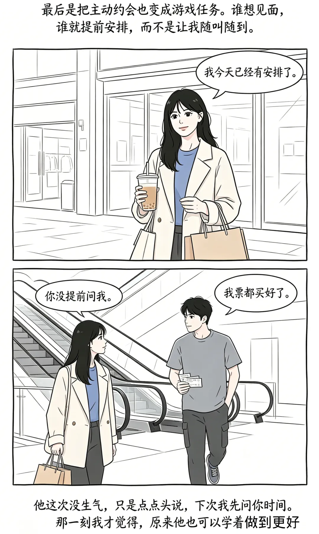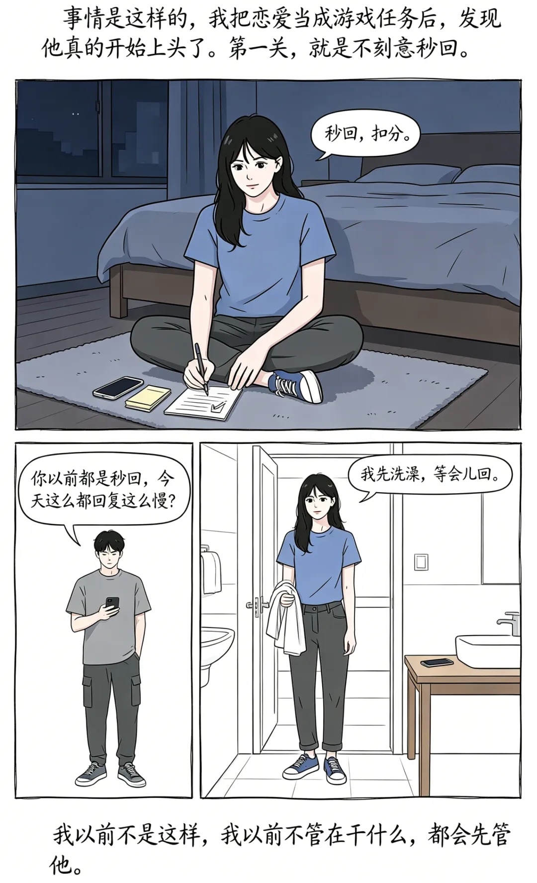 朋友们注意啊,不是让你把恋爱当儿戏,是要从游戏中提取经验,要先刷好自己的主线,恋爱是副本,先要照顾好自己,也才能更好爱他人,而不是一股脑地为了对方丢失自己,让自己受尽委屈,只把对方的事情列为优先级,这样是不健康的关系。不刻意秒回,不刻意讨好,不乱猜,只做该做的,不加戏,不追问,不内耗。双方才不会都莫名其妙的疲惫和有压力,这样健康的交往才能长久。你觉得呢?你有没有这样的经历?
