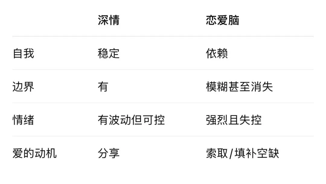 很多人会混淆【深情】和【恋爱脑】,其实差别很大的: