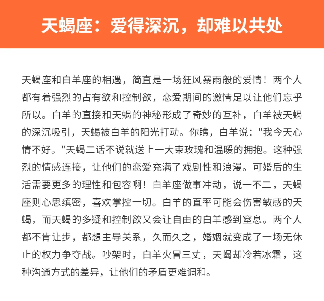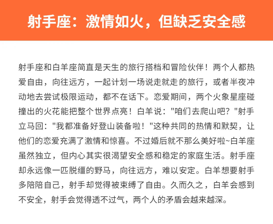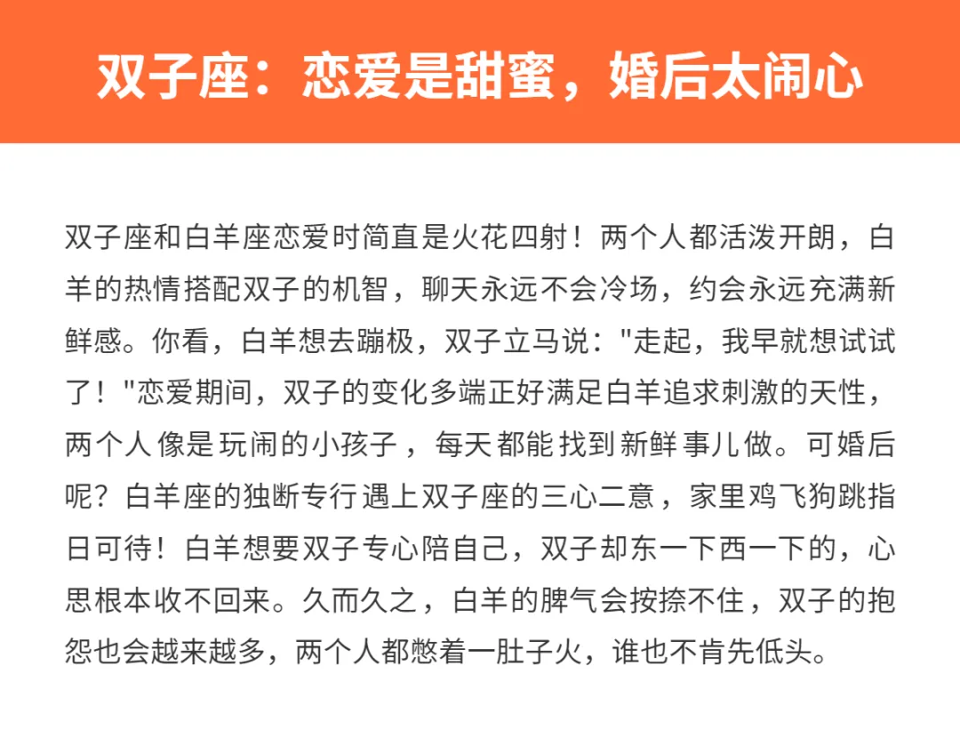 来来来,给大家扒一扒,哪些星座适合和白羊谈一场轰轰烈烈的恋爱,却不太适合走进婚姻的殿堂~