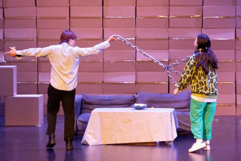 剧目定位为“爆笑喜剧”,源于情侣日常的幽默桥段。爆笑喜剧基底拉满欢乐氛围,开篇崔明浩与漫漫的日常互怼笑料密集,生活化的台词戳中笑点,台词诙谐犀利,肢体表演夸张生动,每一个桥段都能让观众捧腹大笑,沉浸式感受轻松欢乐的喜剧体验。