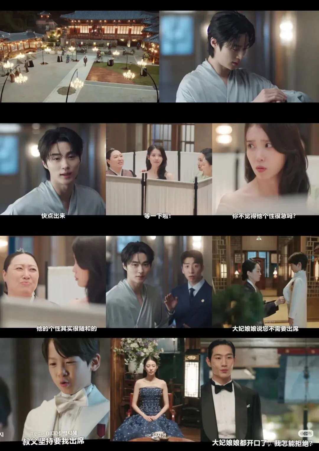 求婚后,两人被大妃娘娘邀请共进晚餐,大君遭到大妃娘娘的言语讽刺和敲打,让他谨记理安两字的深义,已是未婚妻的成熙周牵起他的手愤然离席,用行动陪他对抗王权法度的PUA,还将他带到自己私人游艇上,陪他散心,两人情到深处,热烈拥吻。
