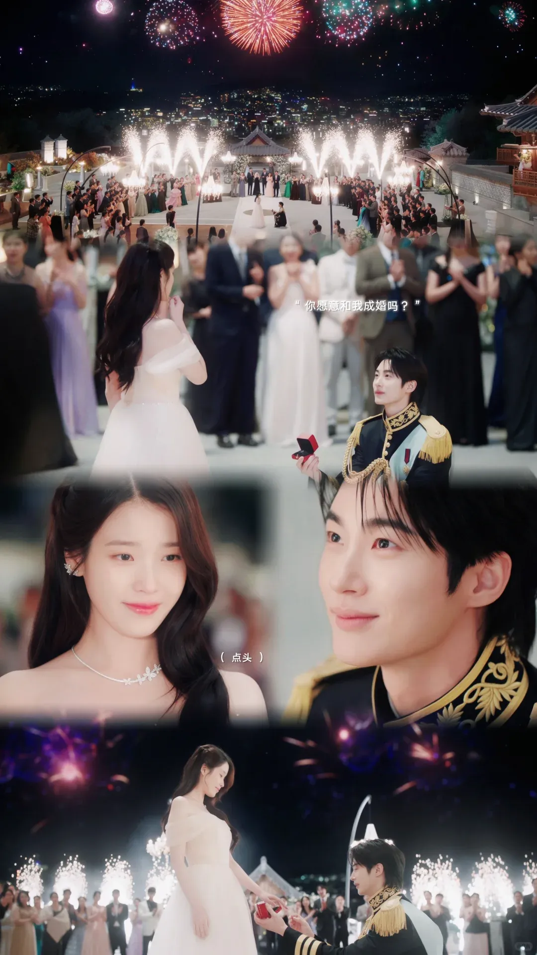 舞会求婚时,大君穿上了最正式的王子制服,烟花烂漫,拿出传承自先皇后的宝石戒指,给她最盛大的求婚仪式。