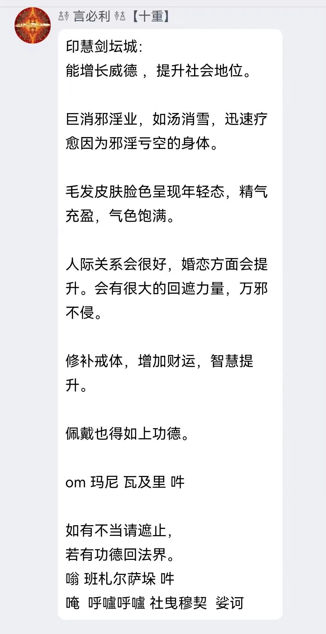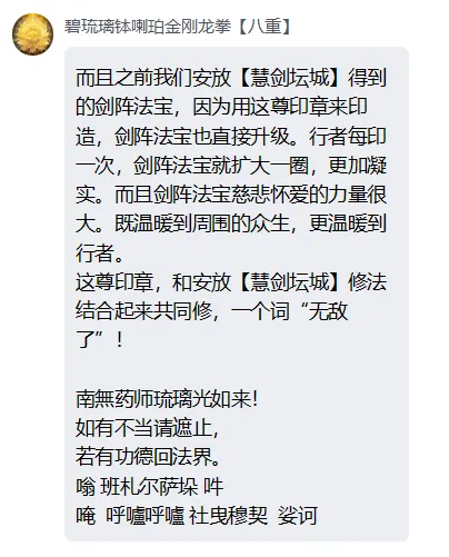 印造【大清净慧剑坛城 】的法界信息