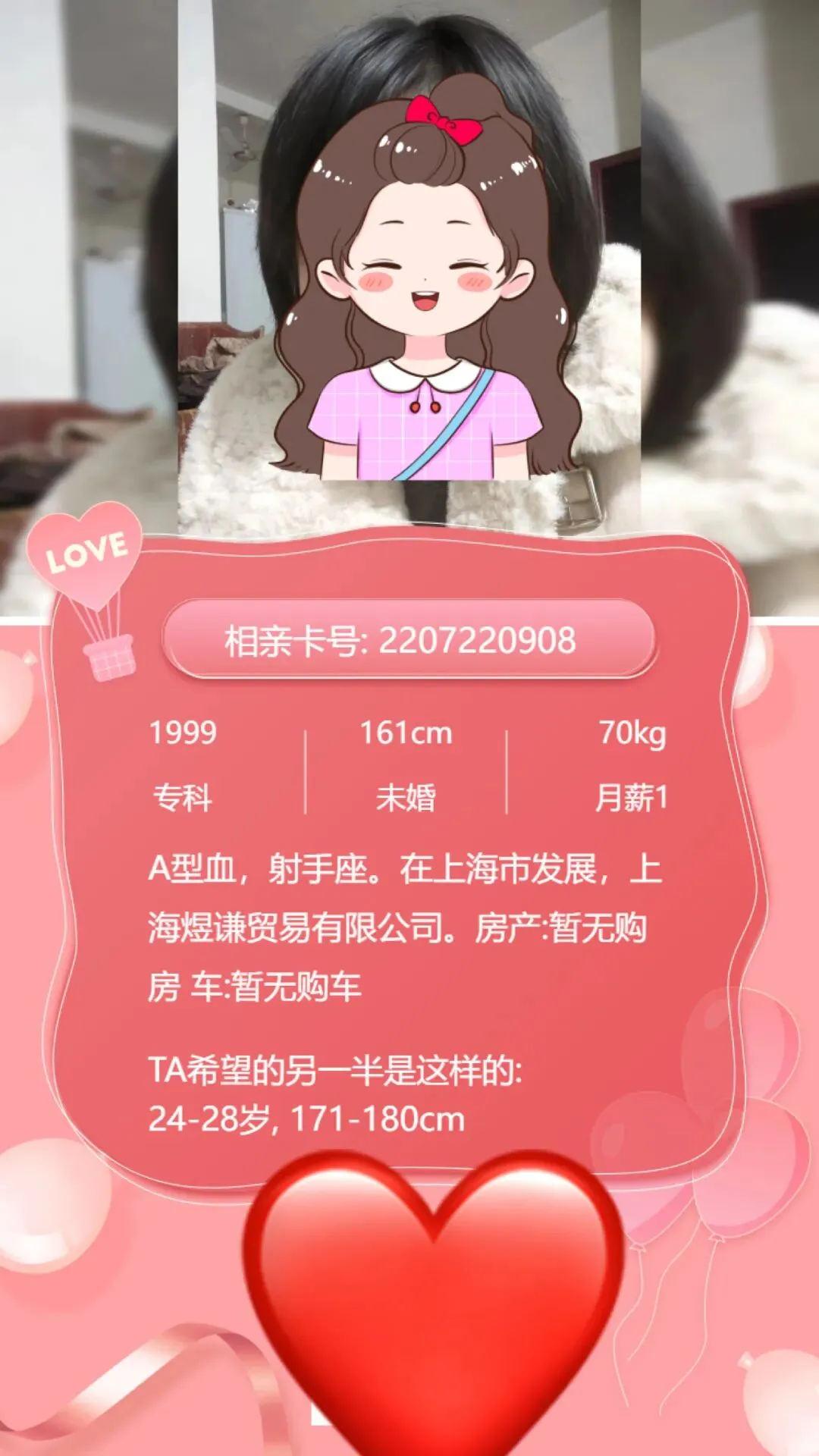 【彭泽婚恋找对象】彭泽99年小姐姐,在上海发展,希望找个有责任心孝顺的男士~