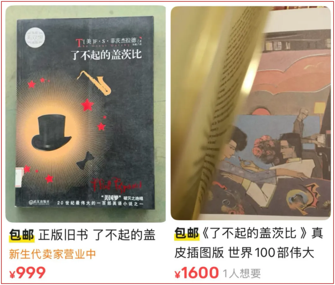 单本《了不起的盖茨比》典藏版在二手市场已价格不菲。