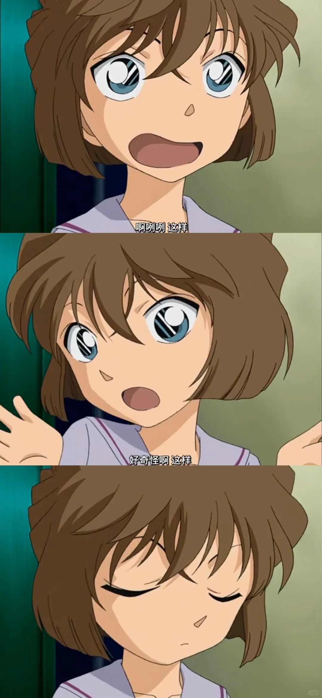 他老是有点让我幻视柯南,哈哈哈哈哈,是柯南不是新一,就有点那种每次柯南装傻的感觉——“啊嘞嘞,好奇怪哦”