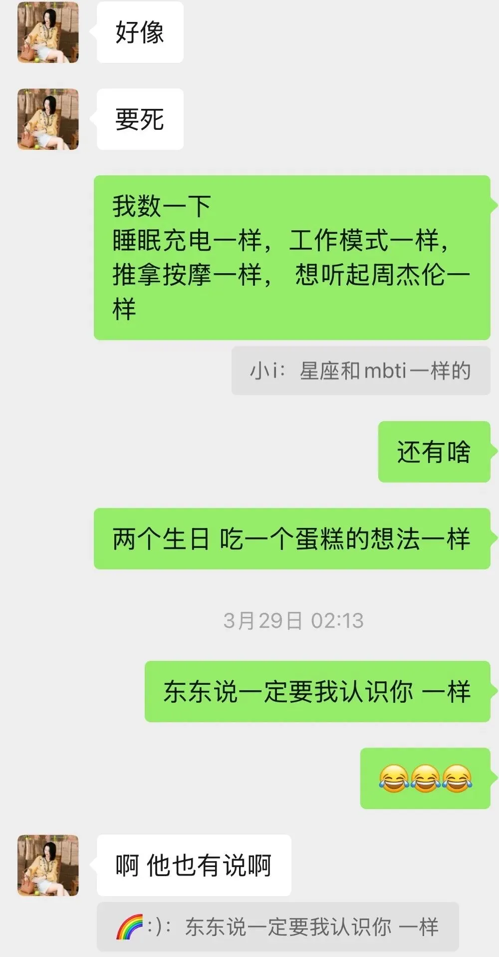 聊着聊着发现——都是INTJ,都是处女座,再聊,生日也差不多。