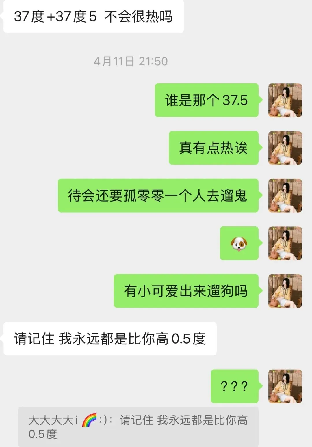 给他发了条消息:有人想遛狗吗?都快凌晨了,他屁颠屁颠就来了。