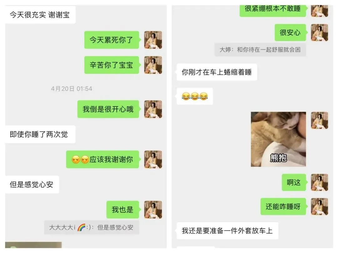 那天我还趴他身上睡着了,在回程的车上也睡了2觉。