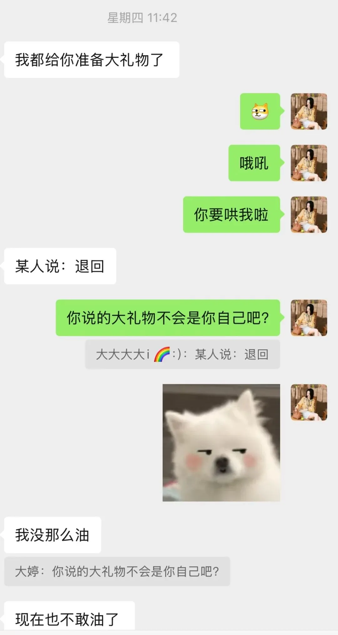 过了几天我问他礼物呢,他随口回了一句:急啥。